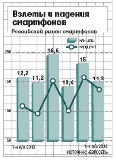 В первой половине 2016 г. доля китайской компании ZTE (контроль – у КНР) на российском рынке смартфонов удвоилась по сравнению с первым полугодием 2015 г., рассказал «Ведомостям» человек, близкий к компании – партнеру нескольких сотовых ритейлеров. Доля ZTE в штуках выросла на 3 процентных пункта до 6%, утверждает сотрудник одного из ритейлеров. Представитель «Евросети» Ульяна Смольская говорит об увеличении доли до 8%, или на 5 п. п. С оценкой «Евросети» согласен гендиректор Telecom Daily Денис Кусков.